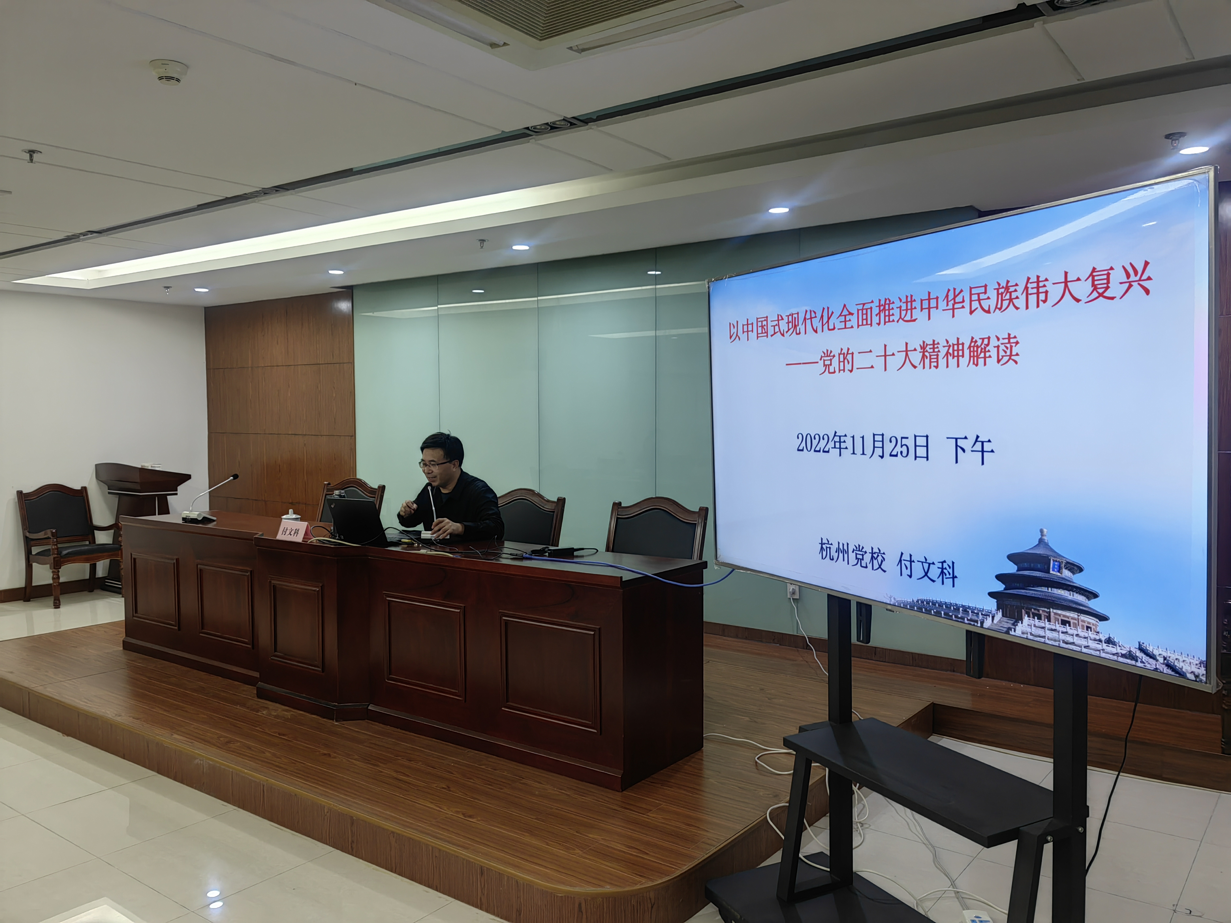 中共杭州市委党校付文科教授作了题为《以中国式现代化全面推进中华民族伟大复兴——党的二十大精神解读》专题党课,对二十大新思想、新观点、新要求作了细致分析和详细解读。